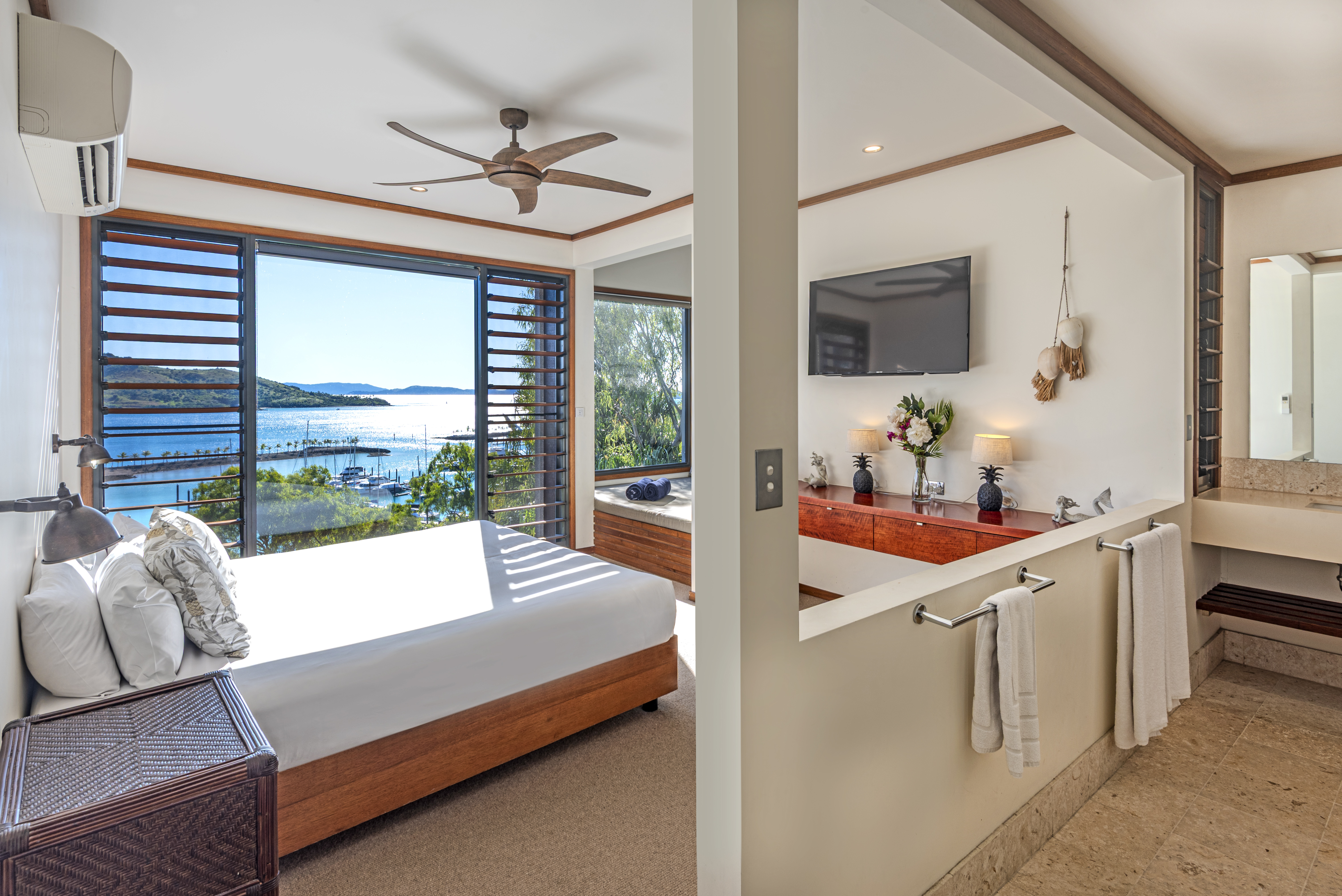 With room for up to 12 guests, this expansive property offers unmatched style and comfort, along with jaw-dropping views of the Hamilton Island Marina, Yacht Club, and the shimmering waters of the Whitsundays.